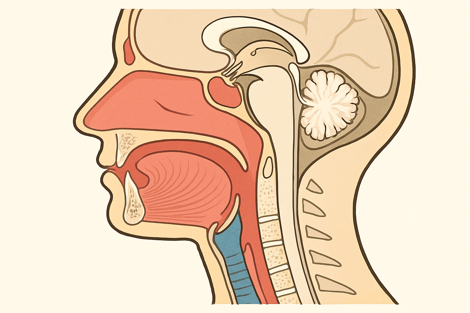Clearly visualize the anatomical landmarks of the airway from the teeth until the arytenoid cartilages.